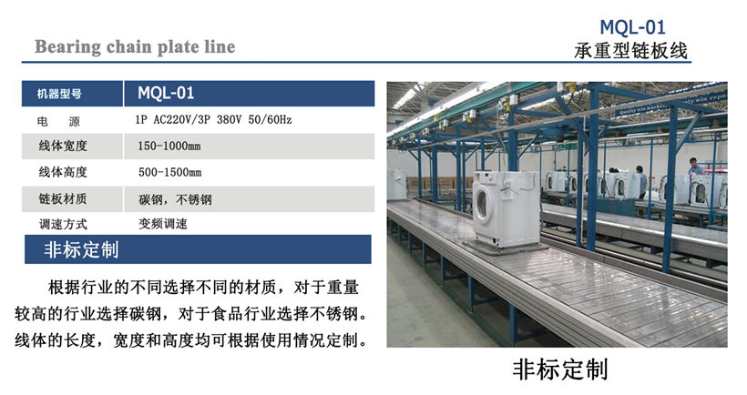 根据行业的不同选择不同的材质,对于重量 较高的行业选择碳钢,对于食品行业选择不锈钢。 线体的长度,宽度和高度均可根据使用情况定制。