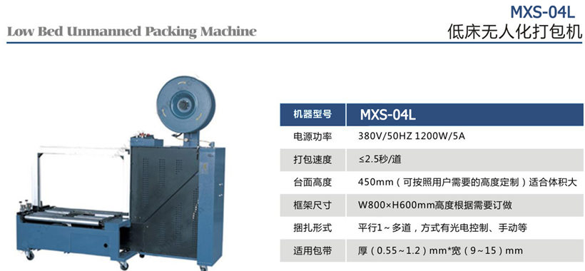 无人化打包机也称无人化捆包机,是指能在无人操作和辅助的情况下自动完成预定的全部捆扎工序的机械,包括包装件的移动和转向,适于大批量包装件的捆扎。是专门为全自动捆包而设计,桌面附加动力滚轮,适合捆包物大小不一,形状较不规则的捆包线上,带有电子眼传感器,衔接输送带可以达到完全无人化的功效。